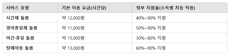 ✔ 2025년 아이돌봄서비스 이용 요금 및 정부 지원율