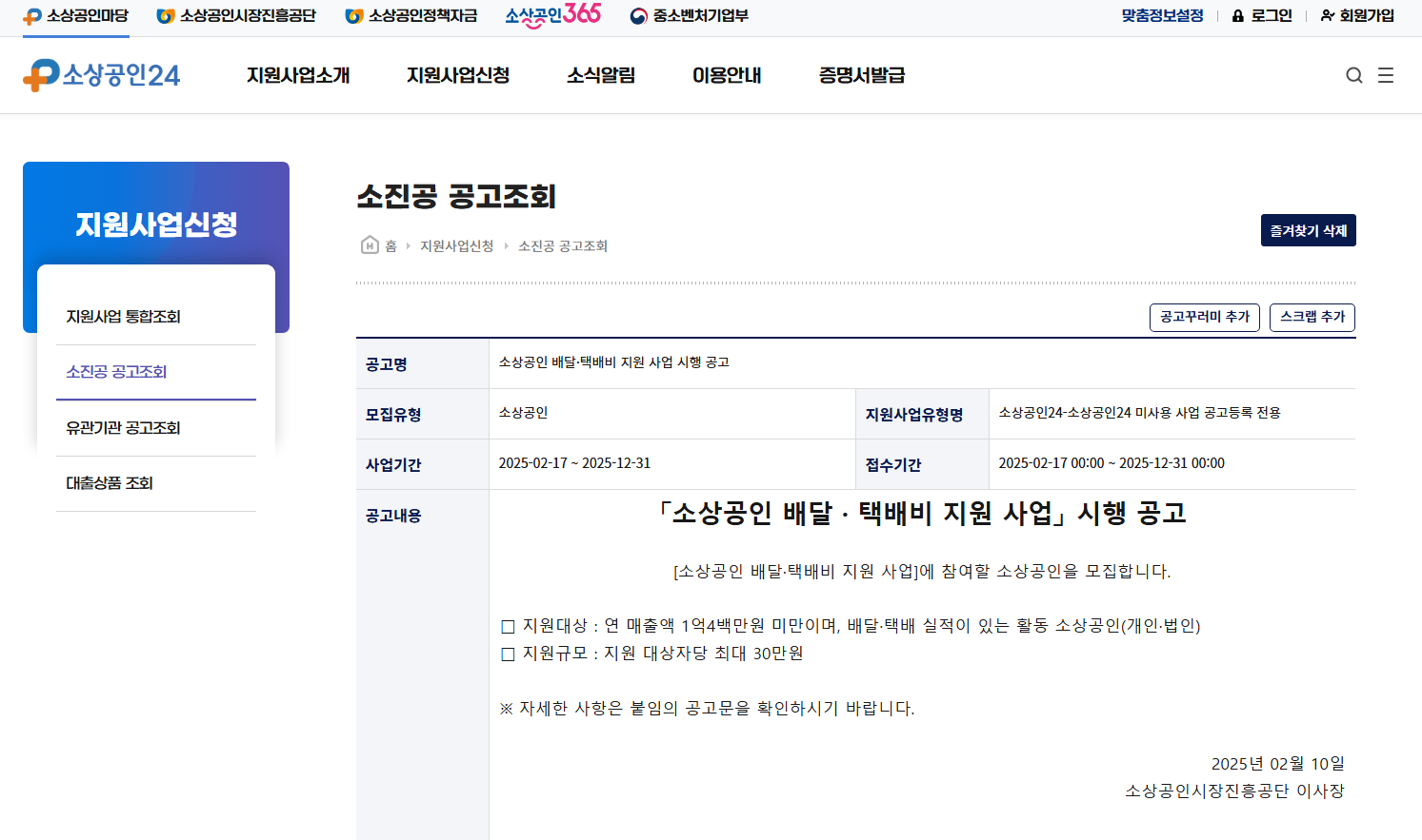 소상공인배달택배비지원.kr (2024년 2월 17일부터 운영)