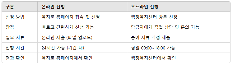 ✔  복지로 홈페이지 또는 행정복지센터에서 신청 가능