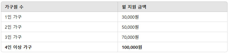 지원 금액은 가구원 수에 따라 차등 지급됩니다.