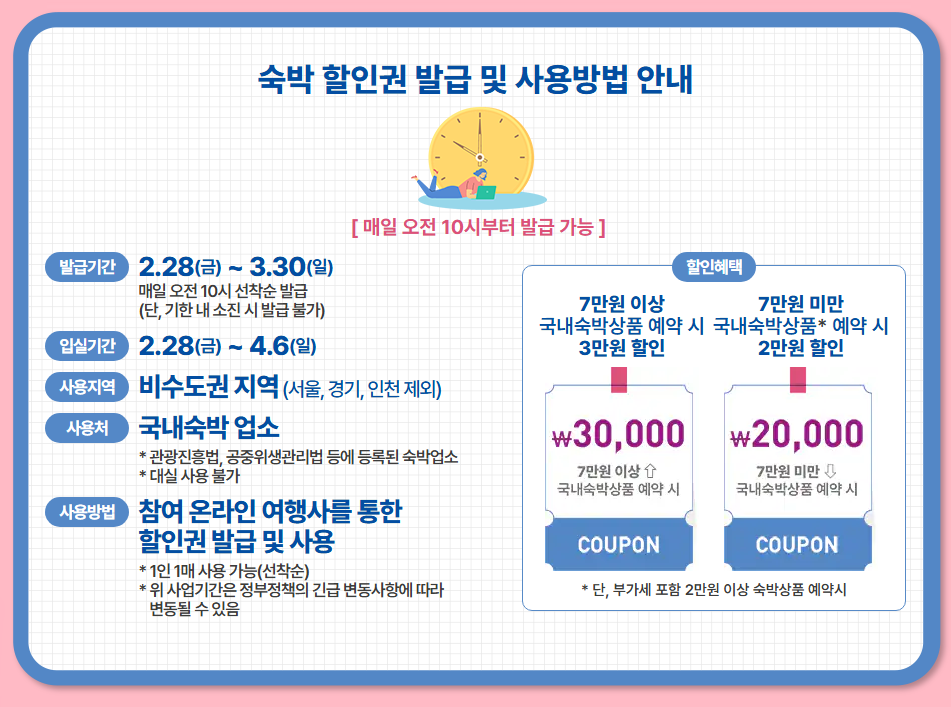 ✔ 7만 원 이상 숙박 상품 예약 시: 3만 원 할인