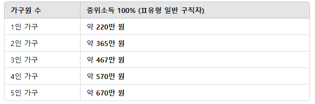 ✔ 일반 구직자는 가구 중위소득 100% 이하여야 하지만,